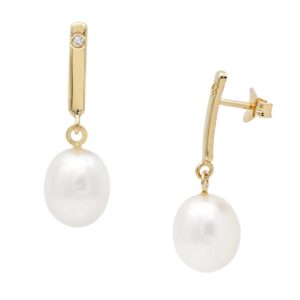 Σκουλαρίκια με λευκά μαργαριτάρια Fresh Water 7×9mm ποιότητας ΑΑΑ, σε βάση χρυσού 14Κ με ζιργκόν και ασφαλές...